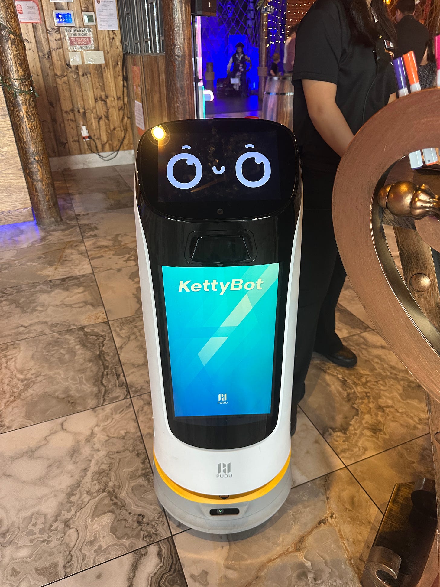 There’s a palpable change when you pass from Oregon into Washington. The first stop we made, I had a robot greet me.