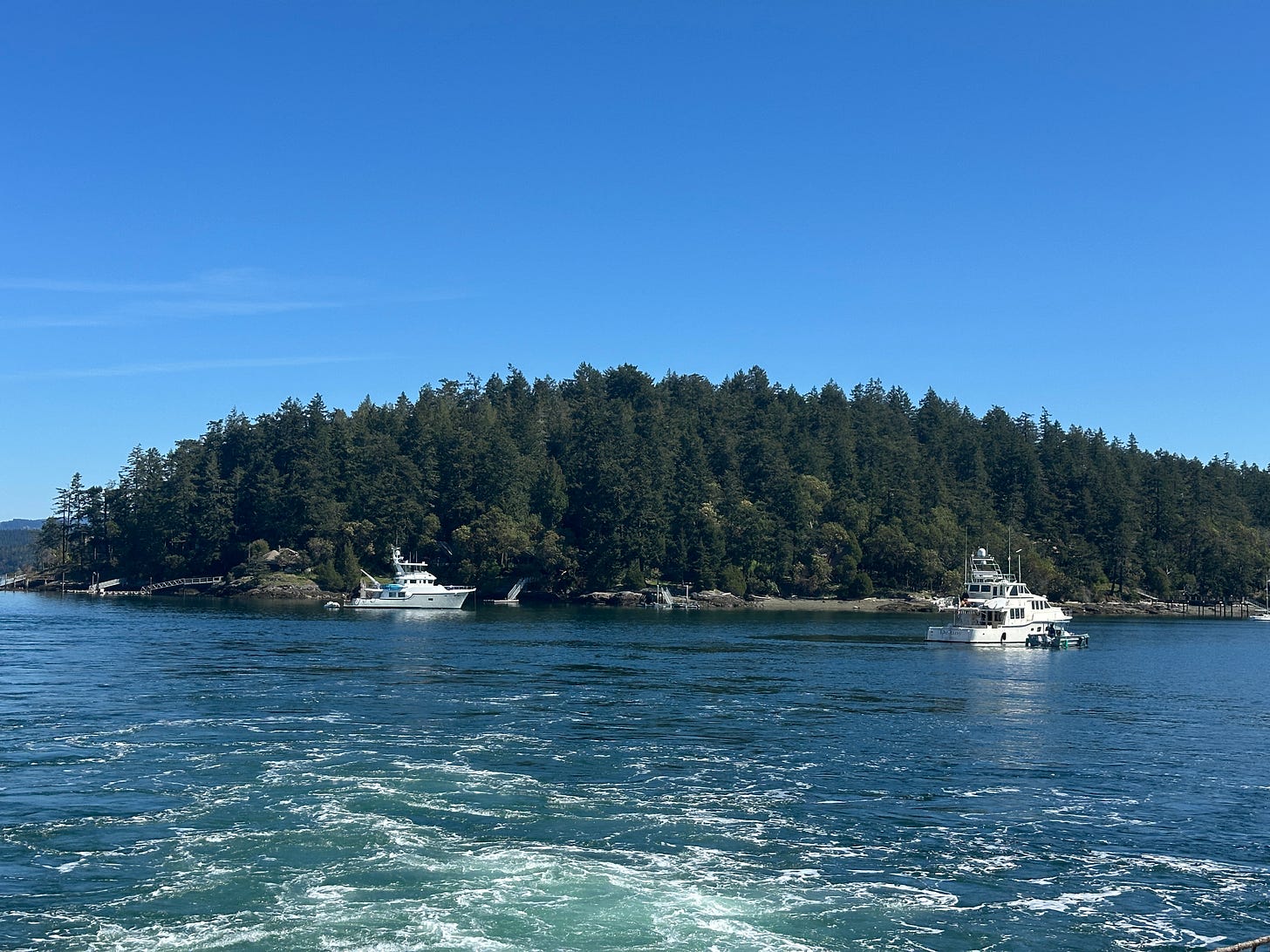 We enjoy the ferries, and just sit in the car with Kai and catch up on our late night comedians. You can get out and go to the bathroom, or sit up in the ship’s main decks if you choose. When we reached San Juan, we had some time to kill before checking in to our bed and breakfast so stopped at a coffee shop. That’s where we experienced our first Island Magic, a term we would learn later. We sat down to share a table with a woman named Tajna (pronounced tie nuh) Zaninović. Tajna is Croatian, and we discovered she is related to the owners of Opolo, a winery we belonged to and have visited for many years when we used to drink wine. (It was, in fact, a conversation with one of those owners during Covid that stopped me from both writing about wine and later stop drinking it.) Turns out, Tajna is a poet and carries around a little journal to write her poems. I asked her to read one. She didn’t hesitate, and now you get to meet Tajna, too.