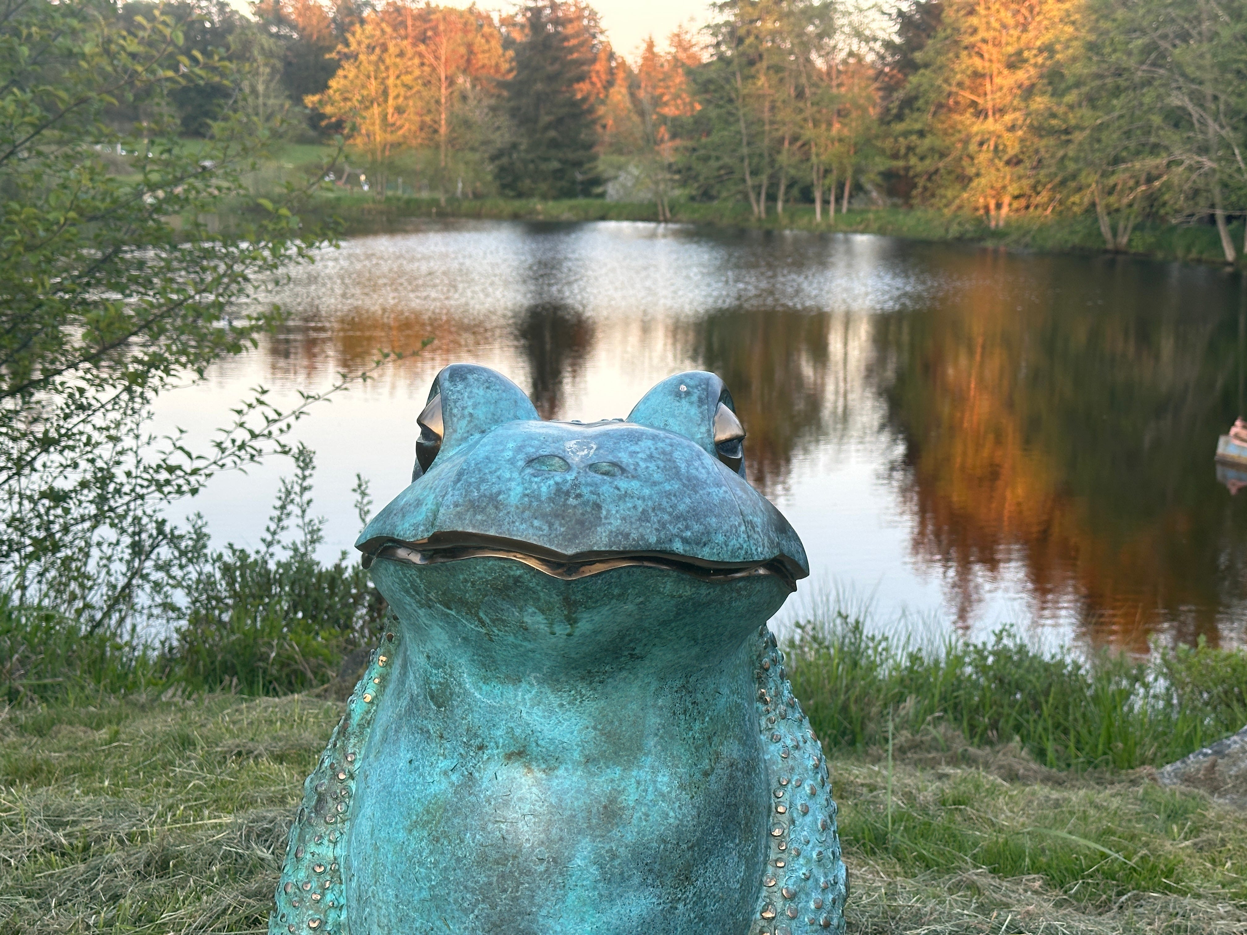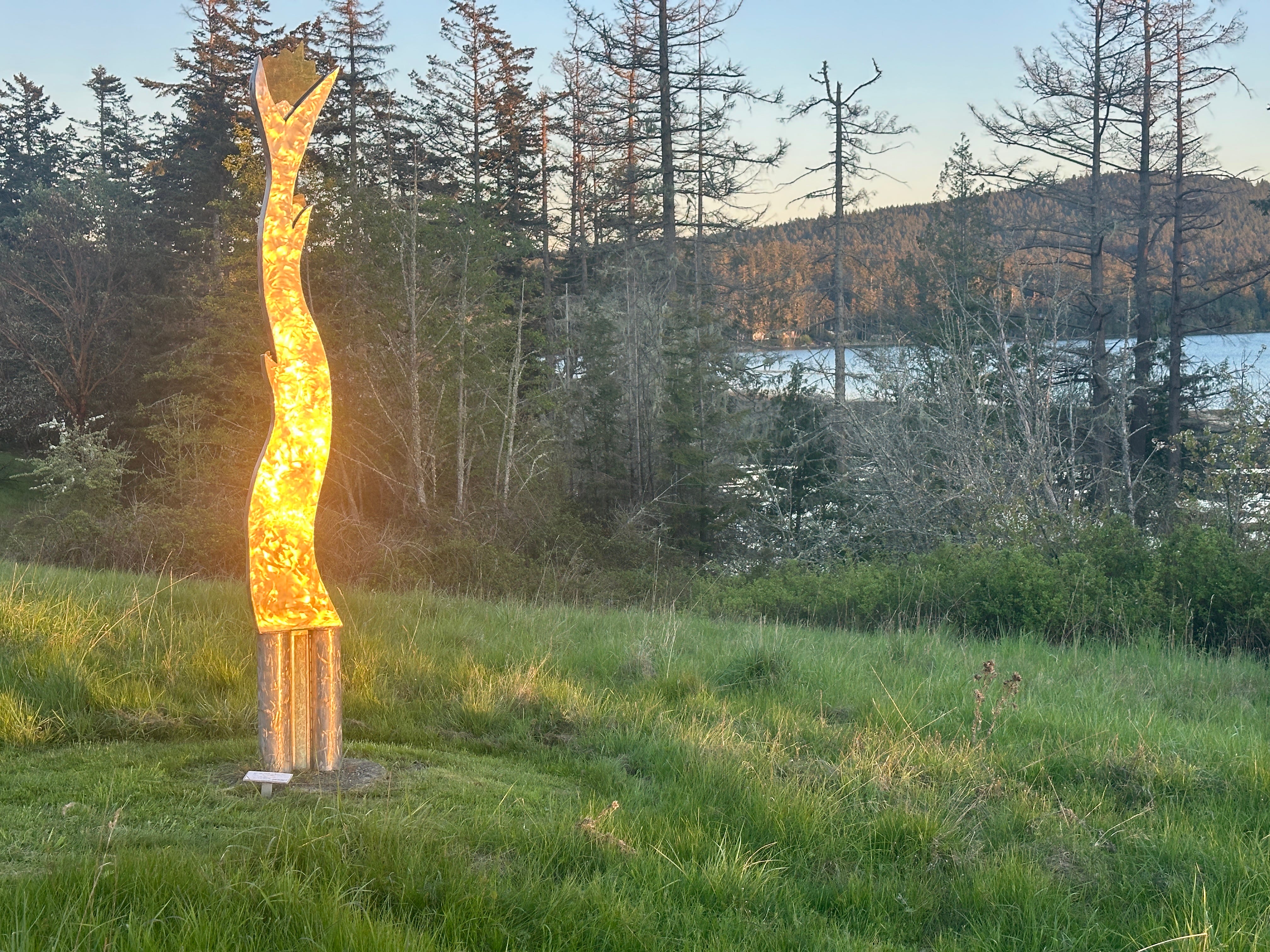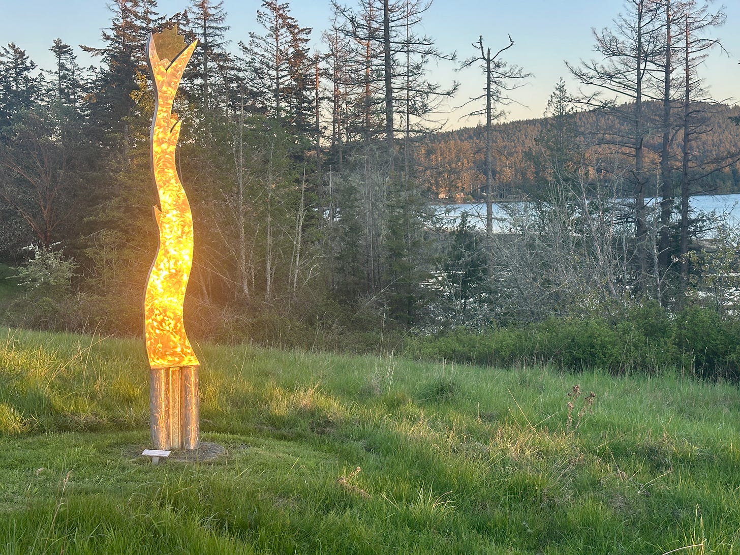 One highlight of San Juan was stumbling on a huge sculpture garden after dinner in an area called Roche Harbor. The dinner didn’t impress us, but the sculpture garden in the perfect light was incredible. Island Magic. Just as we had seen in Hakone (Japan), the garden was designed with the nature around it in mind. The lake, with duck mating rituals at its center, reflected not only the trees around it, but also the frog sculpture and many others.