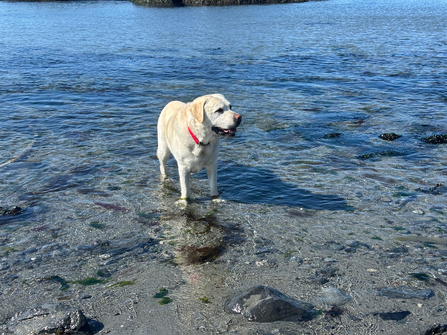 I had the best time at Grandma’s Cove on the San Juan Island. I got to take my cone off, dig in the sand, chew on a stick, and find that same stick in the ocean after my dad threw it in. I loved just standing in the water and cooling off my paws. This place is my new favorite.